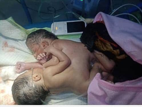 ولادة توأم سيامي نادرة بربك.. والأسرة تناشد لإنقاذ حياة صغيريها